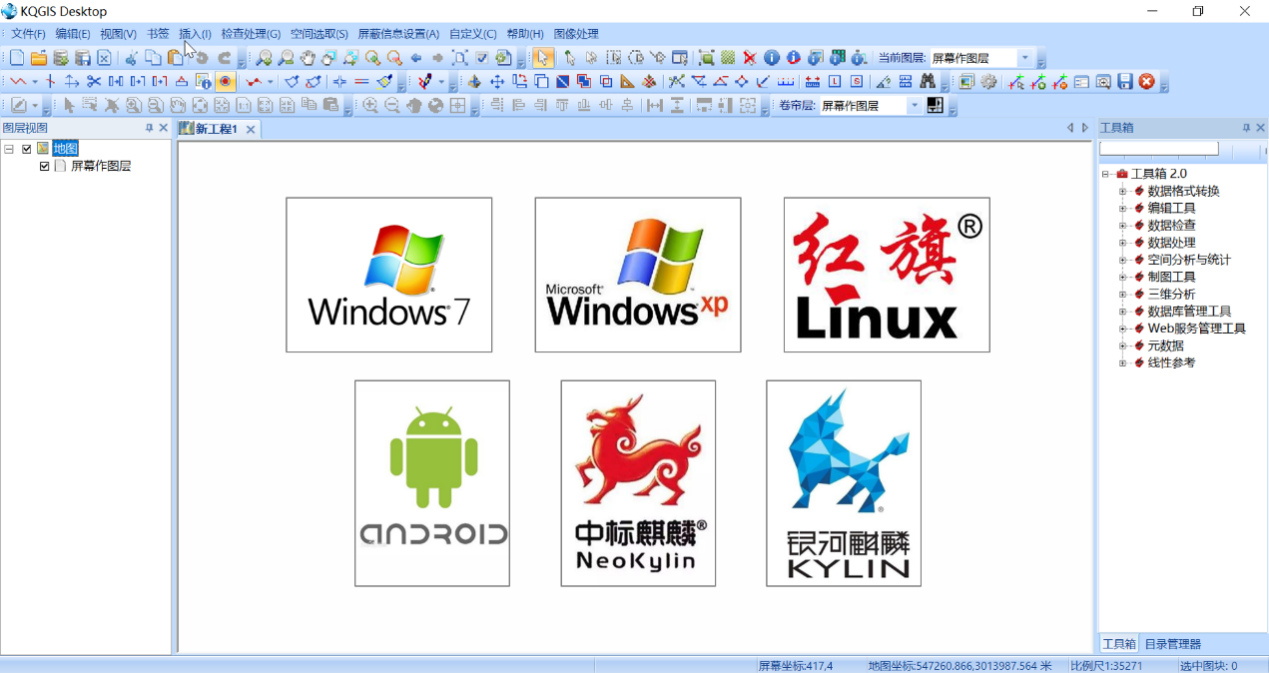 跨平臺(tái)軟件技術(shù)包括多個(gè)方面,能實(shí)現(xiàn)應(yīng)用程序在多個(gè)平臺(tái)下運(yùn)行,提高軟件的重用性。KQGIS Desktop利用跨平臺(tái)GIS技術(shù),實(shí)現(xiàn)了對多種國內(nèi)外操作系統(tǒng)(Windows、Linux、UNIX、Android等)和CPU架構(gòu)(x86、ARM、MIPS等)的支持。