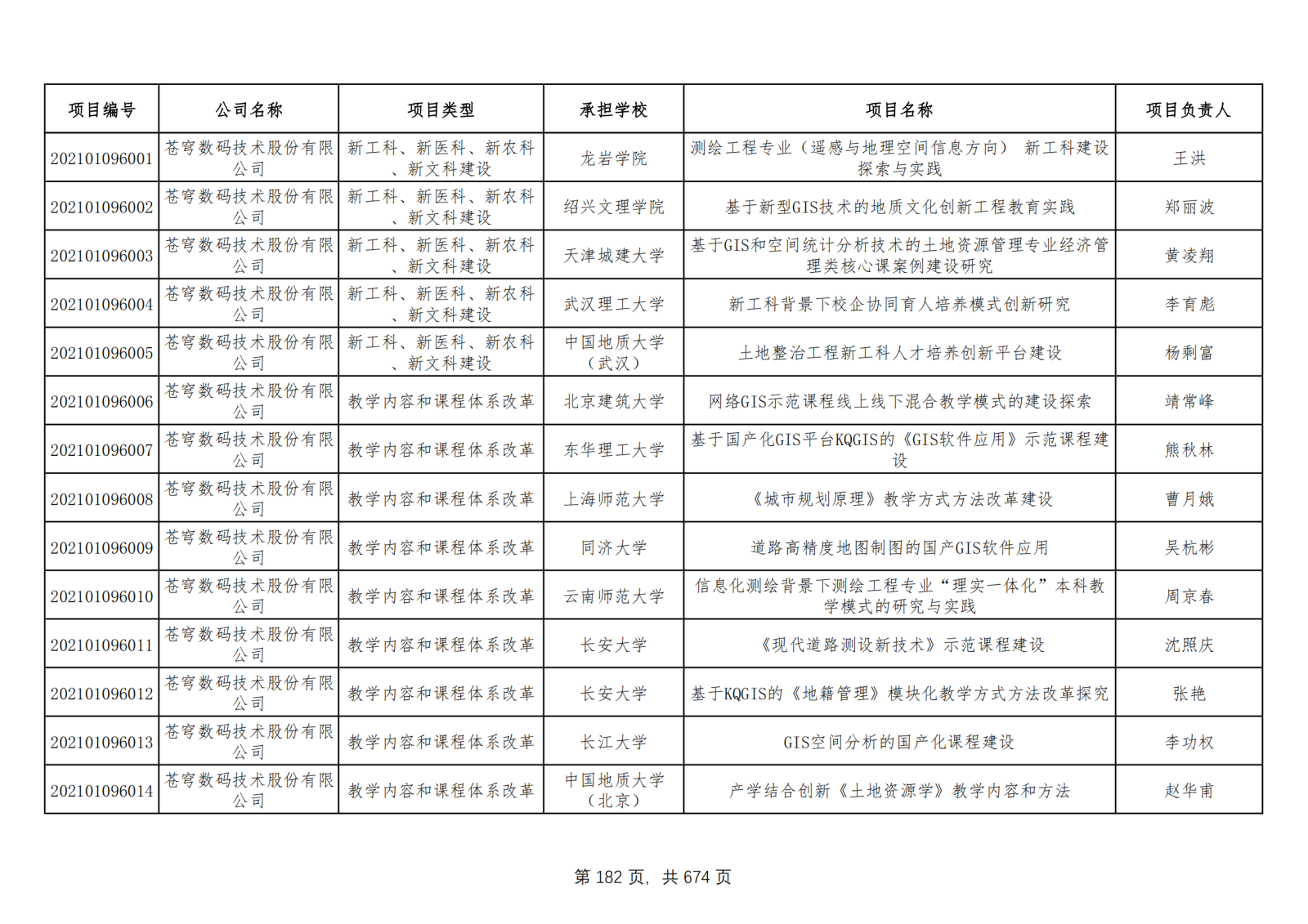 根據(jù)此次對外公示的名單可知,2021年第一批蒼穹數(shù)碼獲批產(chǎn)學(xué)合作協(xié)同育人立項項目共計63個,主要涉及“新工科、新醫(yī)科、新農(nóng)科、新文科建設(shè),教學(xué)內(nèi)容和課程體系改革,實踐條件和實踐基地建設(shè)”等3大項目類型,并分屬同濟(jì)大學(xué)、長安大學(xué)、湖北大學(xué)、中國地質(zhì)大學(xué)、中國農(nóng)業(yè)大學(xué)等眾多知名高校。