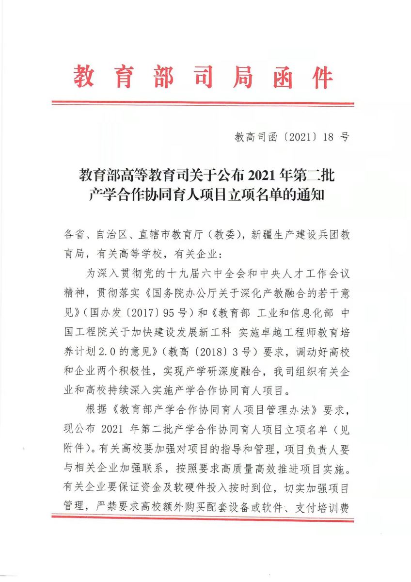 12月14日,《教育部高等教育司關(guān)于公布2021年第二批產(chǎn)學(xué)合作協(xié)同育人項目立項名單的通知》正式印發(fā)。