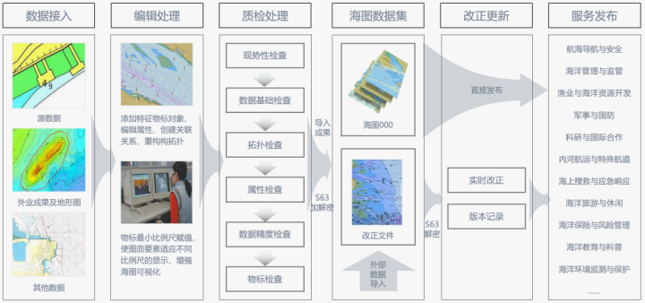 蒼穹國產(chǎn)化電子海圖解決方案包含海圖生產(chǎn)、管理、服務(wù)、應(yīng)用等關(guān)鍵模塊,涉及海圖數(shù)據(jù)接入、轉(zhuǎn)換、編輯、處理、質(zhì)檢、成果封裝、服務(wù)發(fā)布等環(huán)節(jié)。主要實現(xiàn):