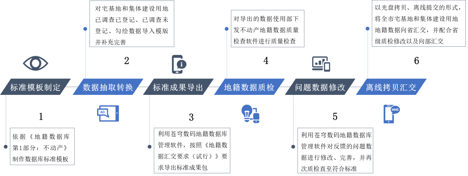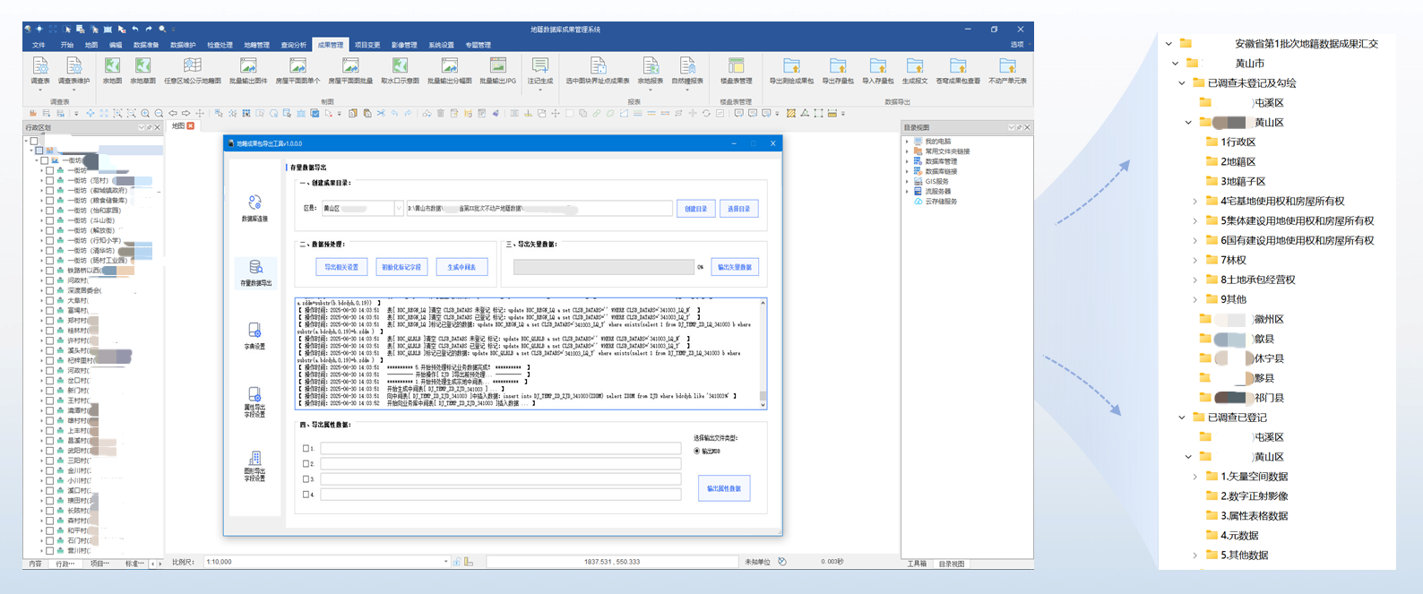 蒼穹數(shù)碼充分發(fā)揮在數(shù)據(jù)治理和質(zhì)檢匯交領(lǐng)域的深厚累積,針對(duì)黃山地籍?dāng)?shù)據(jù)庫(kù)“物理分散、邏輯集中”的管理現(xiàn)狀,快速制定了“標(biāo)準(zhǔn)模板制定—數(shù)據(jù)抽取轉(zhuǎn)換—標(biāo)準(zhǔn)成果導(dǎo)出—地籍?dāng)?shù)據(jù)質(zhì)檢—問(wèn)題數(shù)據(jù)修改—離線拷貝匯交”的整體技術(shù)路線。在以國(guó)家下發(fā)的“不動(dòng)產(chǎn)地籍?dāng)?shù)據(jù)質(zhì)量檢查軟件”為質(zhì)量管控標(biāo)準(zhǔn)的基礎(chǔ)上,依托全國(guó)產(chǎn)自主研發(fā)的地籍?dāng)?shù)據(jù)庫(kù)管理軟件,對(duì)數(shù)據(jù)修改完善后一鍵式快捷導(dǎo)出標(biāo)準(zhǔn)成果包,確保每一項(xiàng)數(shù)據(jù)“查得準(zhǔn)、改得對(duì)、匯得全”。